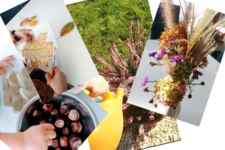 Jedną z aktywności w przedszkolach Montessori jest układania bukietów z kwiatów. Wierzcie mi że ta praca spodoba się zarówno przedszkolakowi jak i starszym dzieciom. Na początek potrzebujemy trochę wolnego czasu aby wybrać się z dzieckiem po astry czy trawy, pięknie kwitnące o tej porze roku.