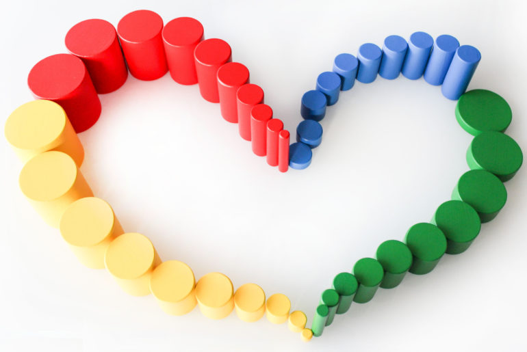 Kolorowe walce to pomoc z działu sensoryki. Prezentujemy ją dziecku po Czerwonych belkach.